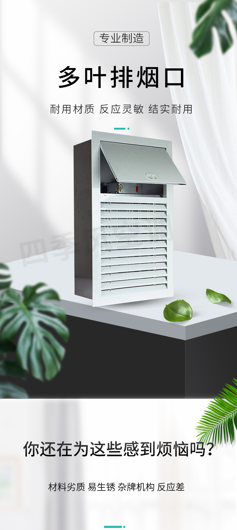 靖江市四季風(fēng)空調(diào)設(shè)備有限公司——多葉排煙口閥門平時常閉;Dc24V電動開啟,手動開啟,輸出開啟信號;手動復(fù)位。