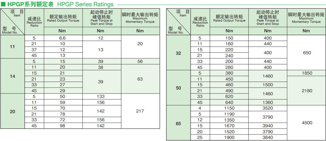 在行星齒輪減速機(jī)中追加轉(zhuǎn)矩提升的HPGP系列,高精度行星齒輪減速機(jī),可簡(jiǎn)單的安裝到各公司的伺服電機(jī)上。 諧波發(fā)生器:橢圓形凸輪的外圈上嵌入薄型的滾珠軸承,整體呈一橢圓形狀的零件。軸承的內(nèi)圈固定于凸輪之上,外圈則介由滾珠彈性變形。一般安裝在輸入軸上。 柔輪:具有薄壁杯型的金屬?gòu)椥泽w的零件。杯的開(kāi)口部外圈刻有齒形。柔輪的底部稱為膜,通常安裝到輸出軸上。 剛輪:剛性環(huán)狀的零件。內(nèi)側(cè)上刻有與柔輪同樣大小的齒形,且比柔輪多2個(gè)齒數(shù)。一般固定在外殼上。